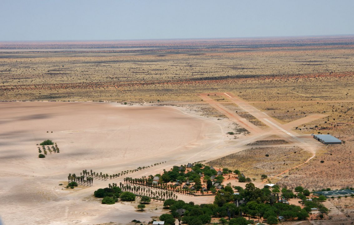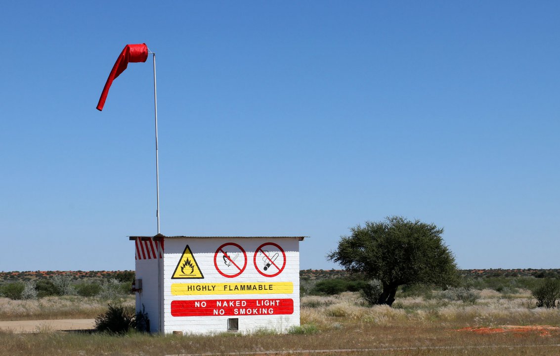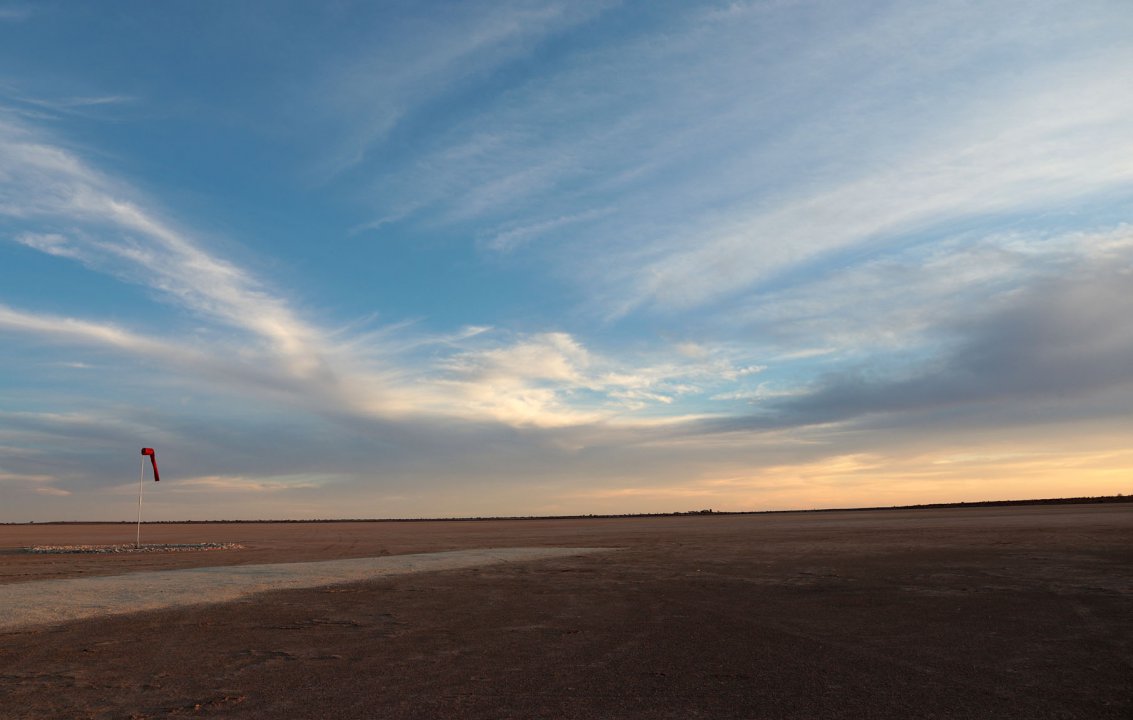 Jeremias setzt seinen Pickup als Follow Me Car ein und geleitet uns zum Start in die Salzpfanne. Es herrscht starker Wind. In der Pfanne können wir die optimale Startrichtung wählen.