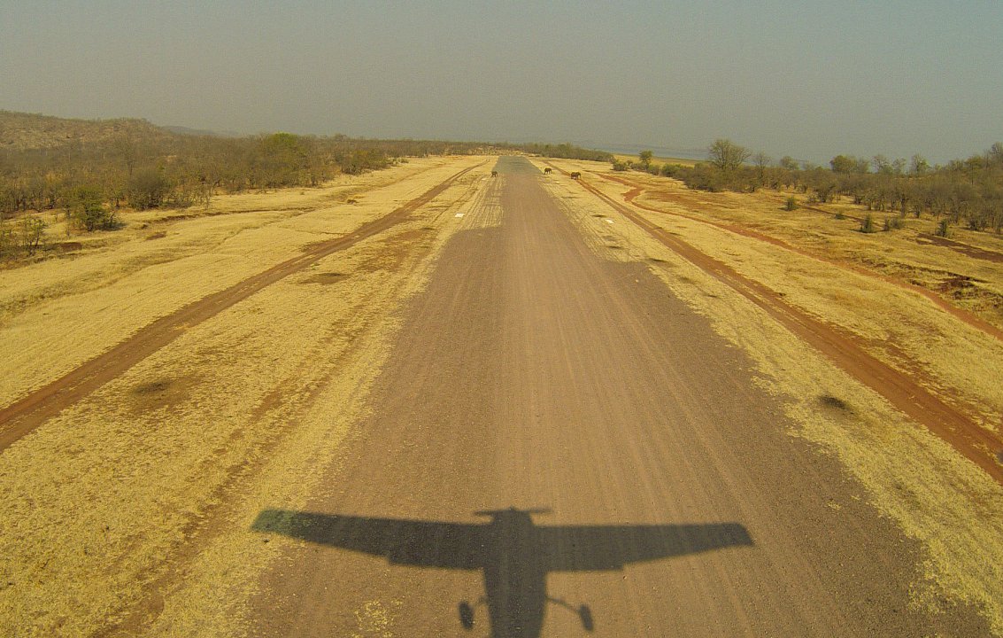 Der Airstrip liegt auf der dem See abgewandten Seite hinter dem Hügel und ist in einem gutem Zustand. Avgas gibt es z.B. in Kariba.