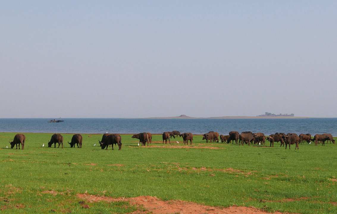mit spektakulärem Blick über den Stausee. Die Premium Zimmer direkt am Hang bieten freiem Blick über die Uferregion und den See. Am Tag sind am Ufer Elefanten und Büffel zu sehen, nachts ist der See übersäht mit den Lichtern der Kapenta Fischerboote.