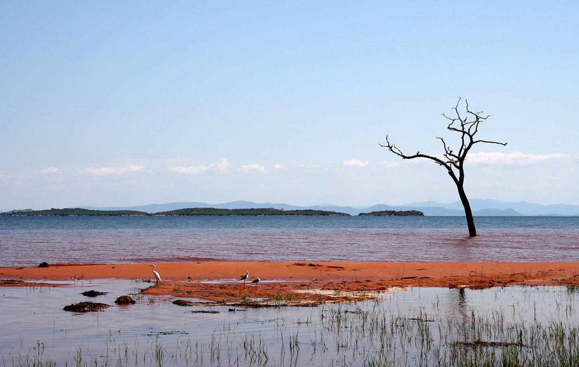 700 km vor seiner Mündung in den indischen Ozean wurde in den 1970er Jahren der Sambesi durch die Cahora Bassa Talsperre noch einmal zu einem 250 km langen Stausee aufgestaut. Zu Beginn unserer nächsten Etappe überfliegen wir die Talsperre.
