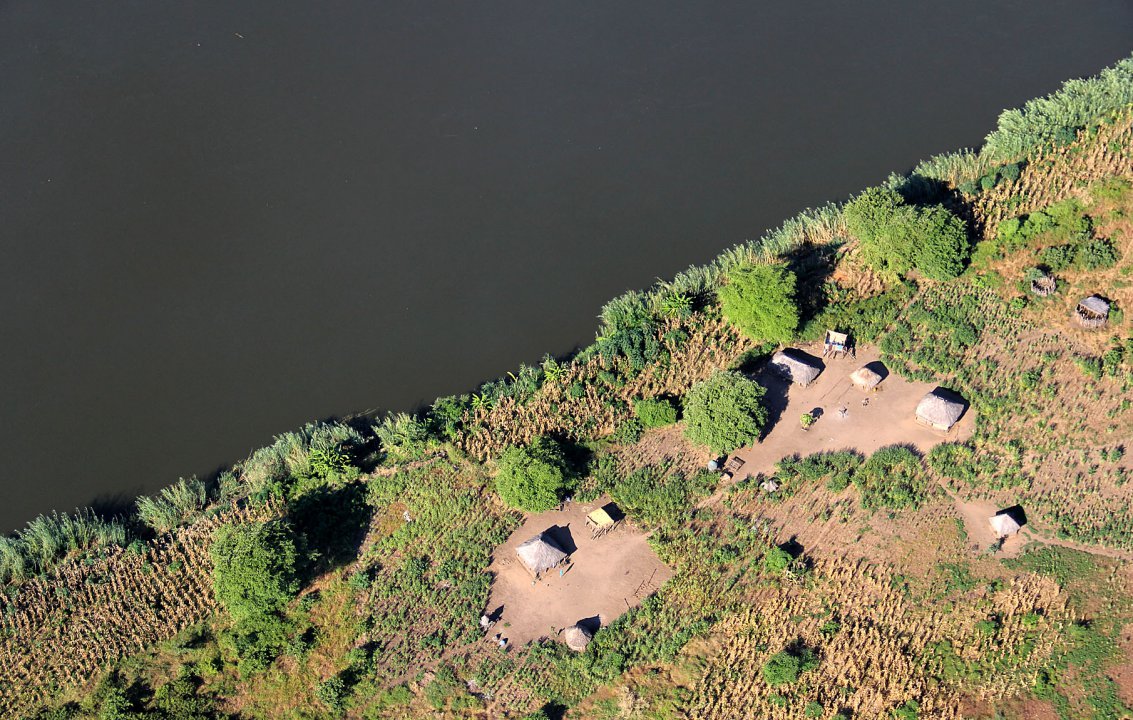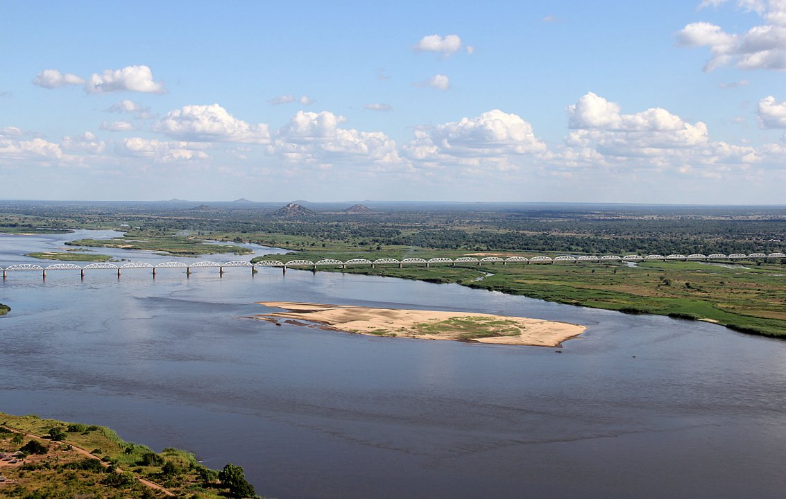 Nur acht Brücken überspannen den Sambesi, davon vier in Mosambik. Die schönste und längste, die Dona Ana Bahnbrücke, verbindet seit 1934 mit 40 Bögen Vila de Sena und Mutarara. Die neueste Brücke (eröffnet 2009) haben wir flussabwärts bei Caia überflogen, die zweite Straßenbrücke spannt sich weiter flussaufwärts bei Tete über den Strom.
