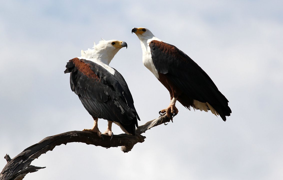 Entlang des südlichen Ufers des Lake Kariba fliegen wir zu unserem nächsten Übernachtungs-Stopp. Nachdem wir uns überzeugt haben, dass keine Springböcke, Elefanten oder anderes Wild auf dem Airfield grasen landen wir auf Bumi Hills. Die Lodge liegt auf einer Anhöhe über dem See mit herrlichem Ausblick. Zwei Tage genießen wir Ausflüge zu Wasser und zu Lande. Besonders auffällig sind zu dieser Jahreszeit große bunte Spinnen die überall von Busch zu Busch ihre Netze spannen. Noch immer strecken tote Bäume ihre Äste aus dem See und erinnern an eine andere Zeit. Circa 57.000 Menschen und über 6000 Tiere wurden um 1960 umgesiedelt, viele Tiere wurden vom Festland abgeschnitten und sind verhungert. Eine kleine Insel vor Bumi Hills heißt Starvation Island – Hunger Insel. Der Weg von der Insel zum Festland war zu weit und zu gefährlich.
