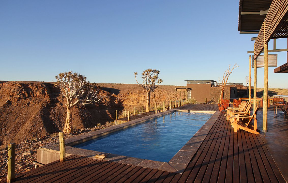 Die neue Fish River Lodge am Westrand des Fish River Canyon wurde 2009 erbaut. Ihre Architektur, die verwendeten Materialien und Farben sind von der umgebenden Natur inspiriert. Schlichtheit und klare Linien dominieren. Die in die Anlage integrierten Köcherbäume verleihen vor allem bei Sonnenauf- und -untergang eine besondere Atmosphäre. Von der Terrasse des Hauptgebäudes und von jedem Chalet eröffnet sich ein atemberaubender Blick über den Canyon. In kurzen Wanderungen entlang des Canyon kann man auf eigene Faust Flora und Fauna erkunden. Die Lodge bietet geführte Wanderungen und Fahrten in den Canyon an.