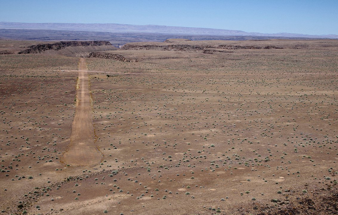 3 km von der Lodge entfernt befindet sich der gut instandgehaltene Airstrip (gravel) - FYGrand. Da er in einer Talmulde liegt ist er vor den manchmal sehr starken Aufwinden aus dem Canyon etwas geschützt. Leider fehlen für parkende Flugzeuge Befestigungsmöglichkeiten.