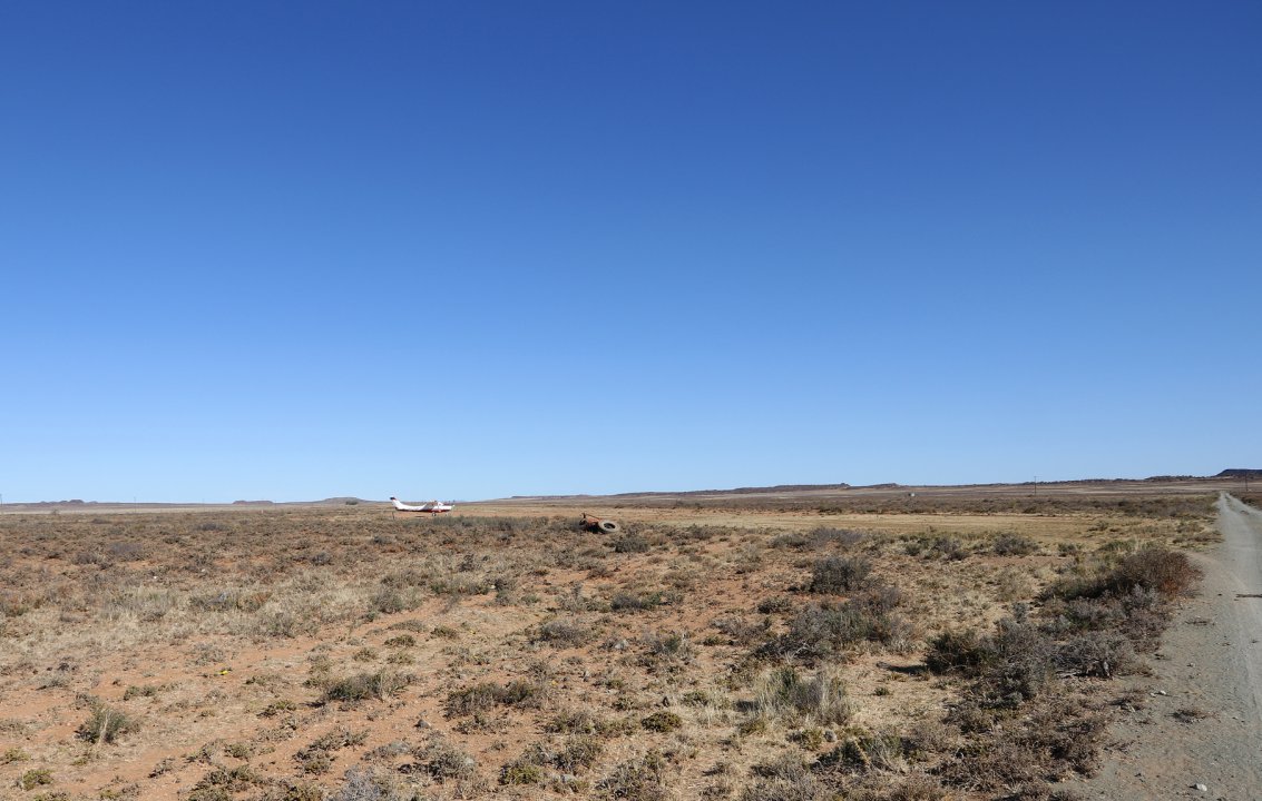 Die Landebahn liegt gleich neben der Farm. Man kann zu Fuß zum Flugzeug laufen.