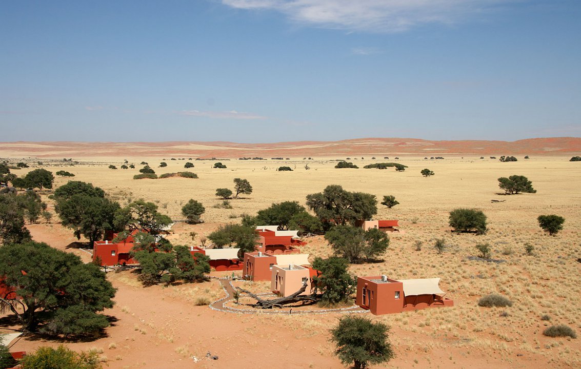 Die Sossusvlei Lodge bietet allen Komfort am Rande der Namib. Die Lodge ist zwar Mainstream und wird von vielen Touristen angefahren, wohnt man jedoch in einem der Zelte am Rand der Lodge fühlt man sich alleine mit Wüste und Sternen. Die Lodge bietet ein ausgezeichnetes, vielfältiges Buffet mit allen Sorten Wildfleisch.