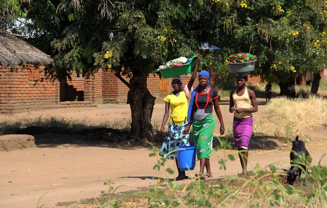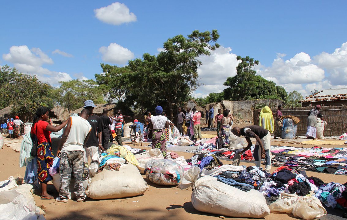 Innocent, unser Kellner im Club Makokola, hat angeboten uns sein Dorf zu zeigen. Es liegt einen Kilometer vom Club entfernt. Heute ist Markttag. In großen Plastiksäcken werden die Waren herangekarrt. Angeboten werden alle Sorten Kleidung und Schuhe. Die Ware scheint second hand aus den reichen Ländern Europas zu stammen. Es gibt im Dorf eine große Schule mit indoor und outdoor Klassen und einen Kindergarten für die Kinder bis fünf Jahre. Eine kleine Gruppe älterer Damen bietet am Rand der Schule zusätzlich zum Schulessen gegen Bezahlung leckere Kleinigkeiten an.
