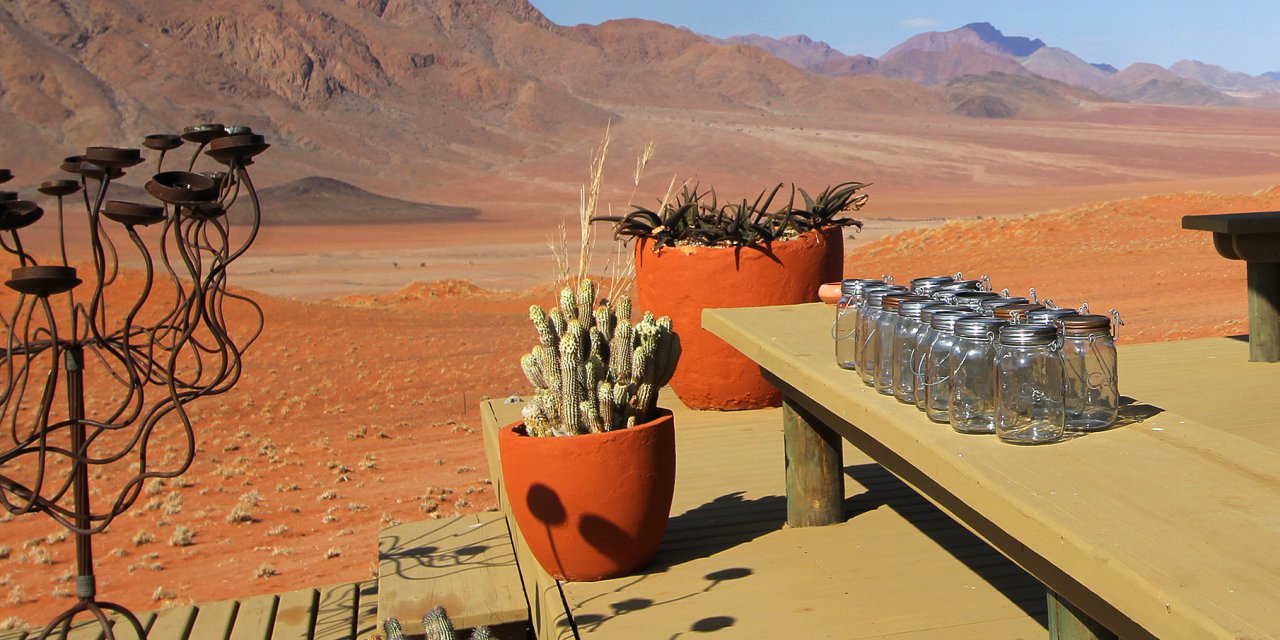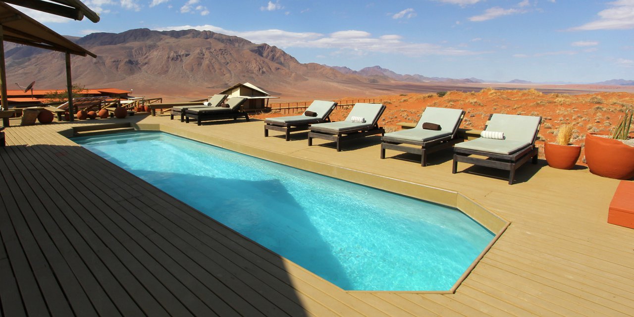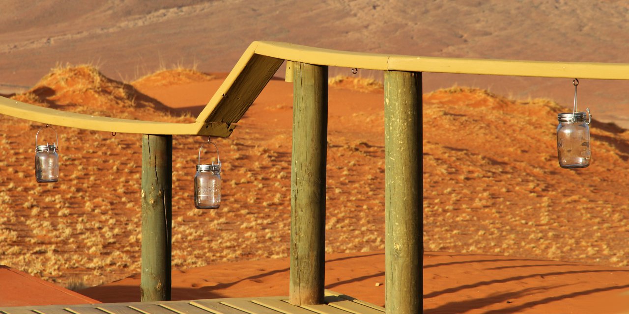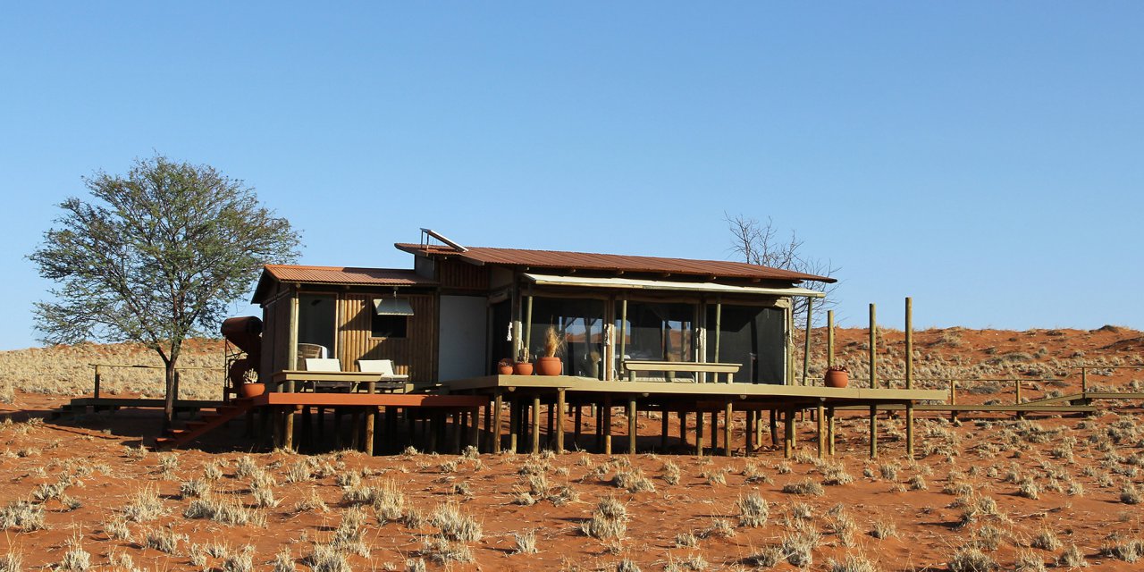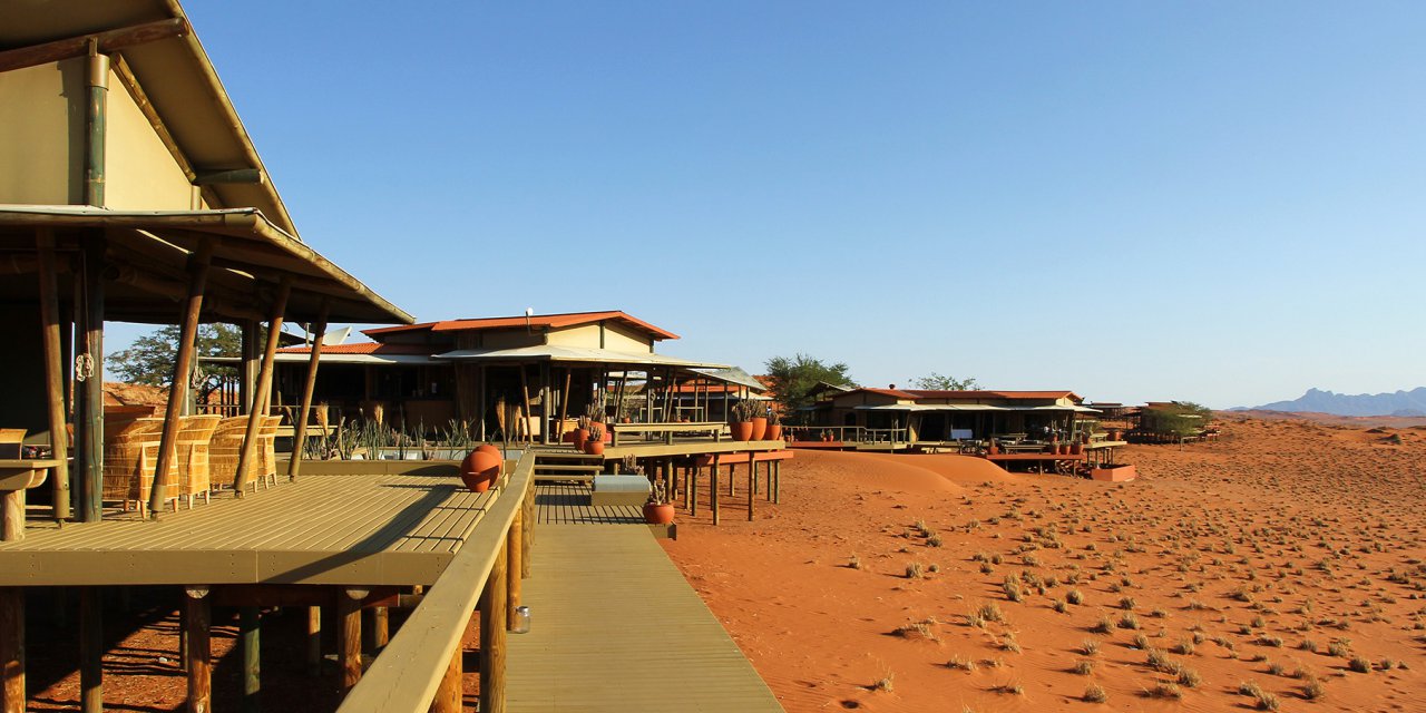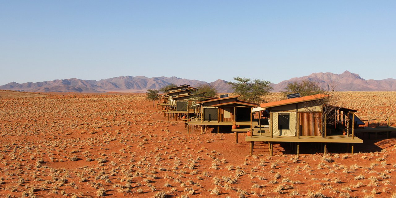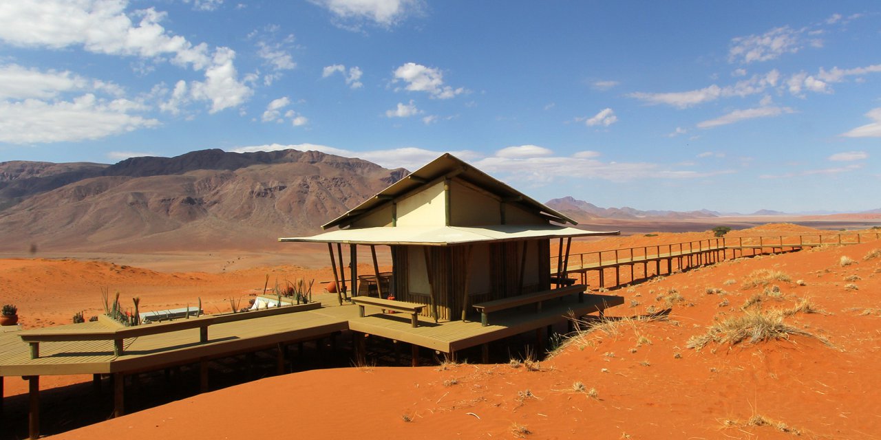 The camps building style is a combination of wooden structures and canvas blinds, opening up to the desert.