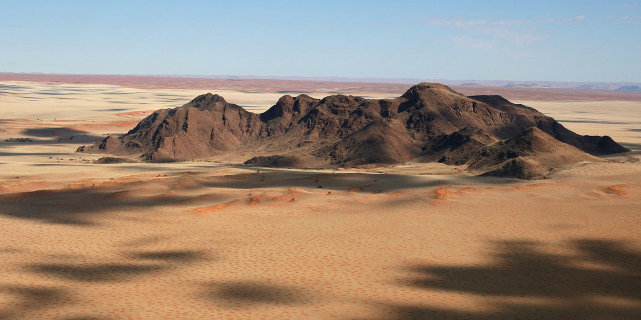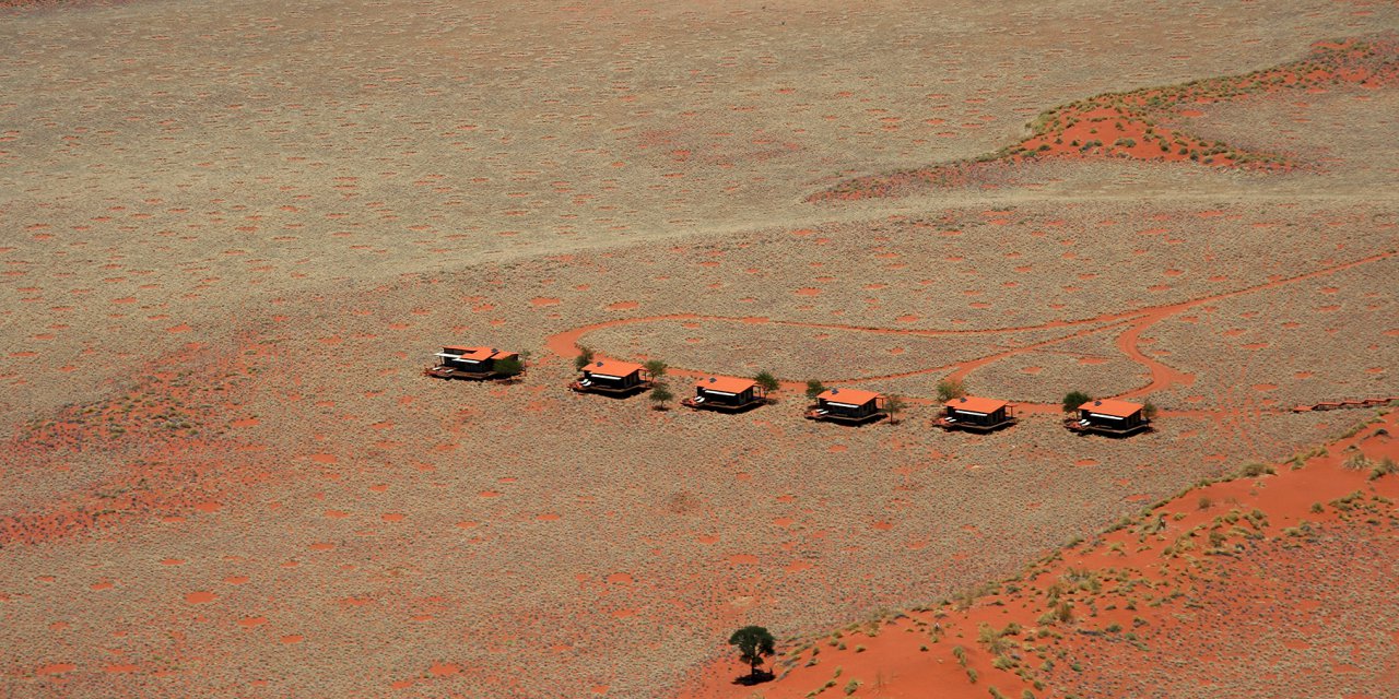 From the air you spot the "fairy circles". The circles, which support little flora, are an integral part of the distinctive landscape of NamibRand Nature Reserve. No one has yet been able to ultimately determine their cause or purpose.